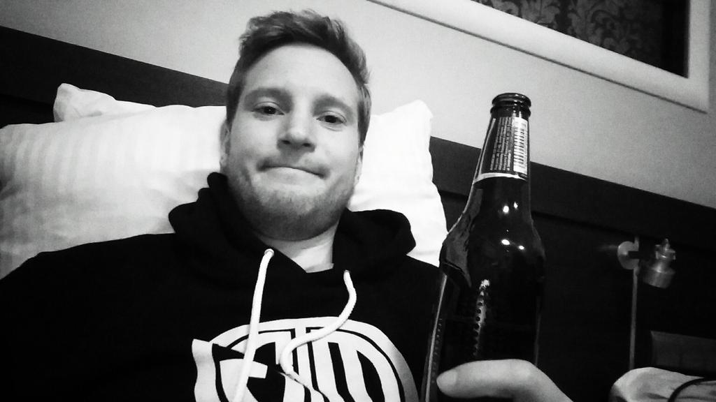 Kasper Alstrup nyder en kold øl efter torsdagens strabadser (Kilde: @munkefaren)