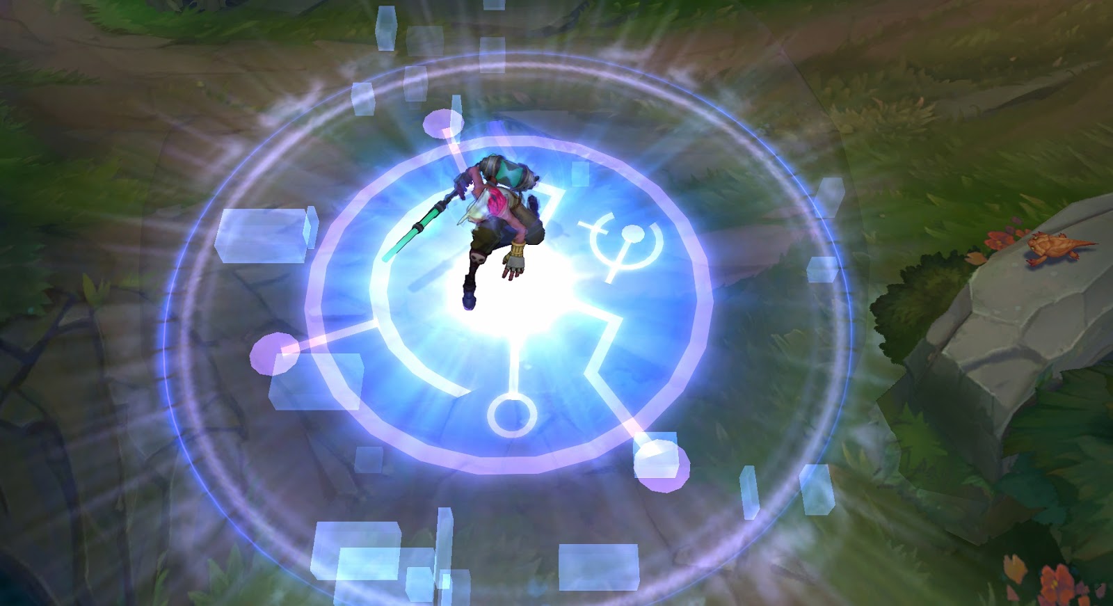 Bemærk, at hans ultimate kan benyttes inden for 4 sekunder efter at have brugt Recall til at komme direkte tilbage til sin lane, hvis man recallede derfra.